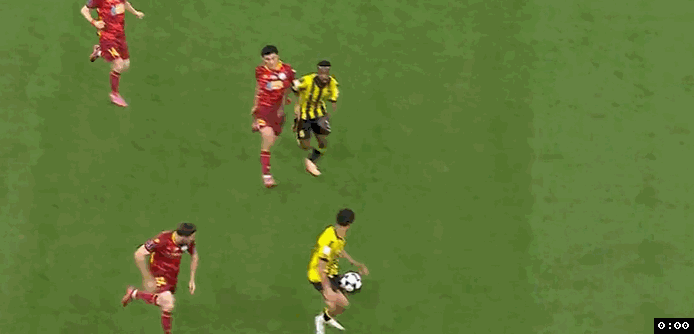 第40分钟,吉达联合中路压上,本泽马策应斜吊转移到右侧,纳萨夫后防解围失误,迪亚比插上突入禁区接球,倒三角似传似射往门前兜,门将内马托夫奋力将球扑出,本泽马后排拍马赶到抢到第2落点超近距离凌空垫射,BOOM的一声皮球又是被门柱挡出,吉达联合今天这运气也不怎么样。易边再战吉达联合加强进攻,第55分钟,吉达联合左路压上,本泽马禁区前沿和队友配合后还是无法打进去,本泽马将球传回来,吉达联合重新组织进攻,法币尼奥斜塞左侧,刚替补登场的费尔南德斯禁区边上接球晃开防守兜传门前,后点无人防守的本泽马小禁区内抢点凌空垫射,这次皮球应声入网,吉达联合1:0终于是打破僵局。